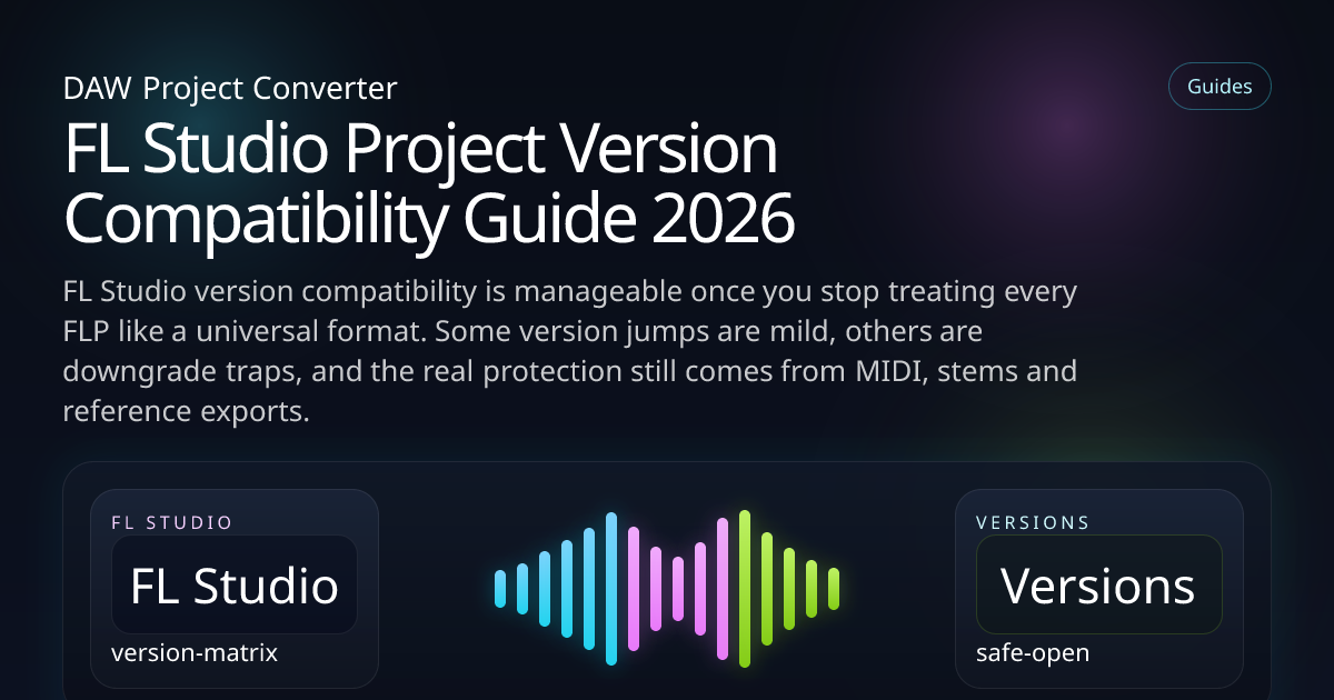 FL Studio version compatibility is manageable once you stop treating every FLP like a universal format. Some version jumps are mild, others are downgrade traps, and the real protection still comes from MIDI, stems and reference exports.